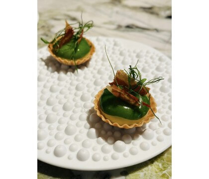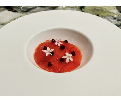 其中,最引人注目的是使用了來自北海道的清酒。Thomas巧妙地運用了這款清酒,以冰涼和溫熱的方式搭配不同的菜餚,為賓客提供了一場絕佳的餐酒搭配體驗。